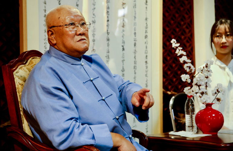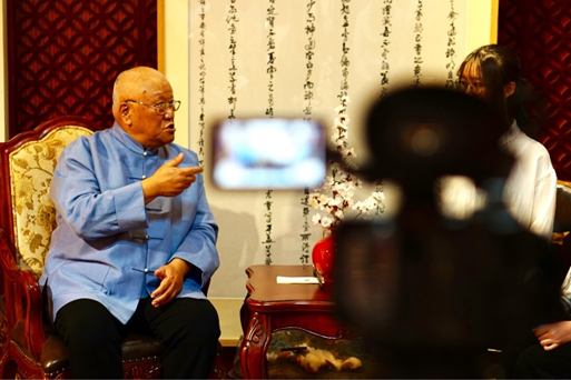 在北体每天训练很累,有时候甚至爬不上上铺的床;而且当时物质紧张,条件十分艰苦,连报纸都没有,于是只能在六屉桌上用仅有的区域练字,写完就用抹布擦掉,最后把桌子的漆都写掉了。讲述到自己年轻时的学生生活,先生的手势也丰富了起来,似乎回到了从前的时光。