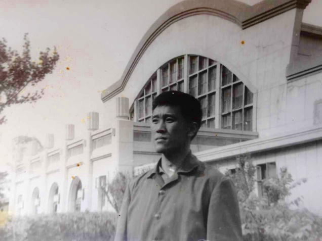 1963年杨先生在北京体育大学训练场留影(左)-1965年杨先生在北京体育大学游泳馆前留影(右)-照片支持/杨再春工作室