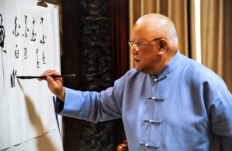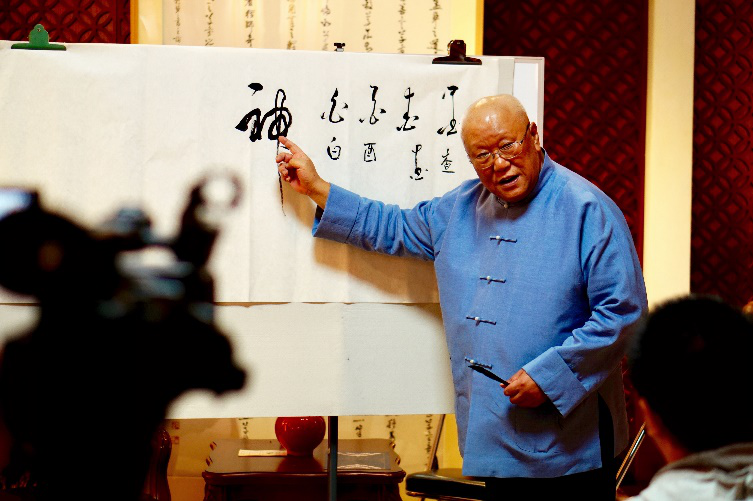 在先生进行现场的书法展示与教学时,先生不仅一展书法,为座谈会留下了纪念作品,还从草书入手,为在场观众讲述了笔顺对字的影响,以及引导观众们进行互动,对一些错别字进行了讲解,再次强调了专注对于学习的重要性。