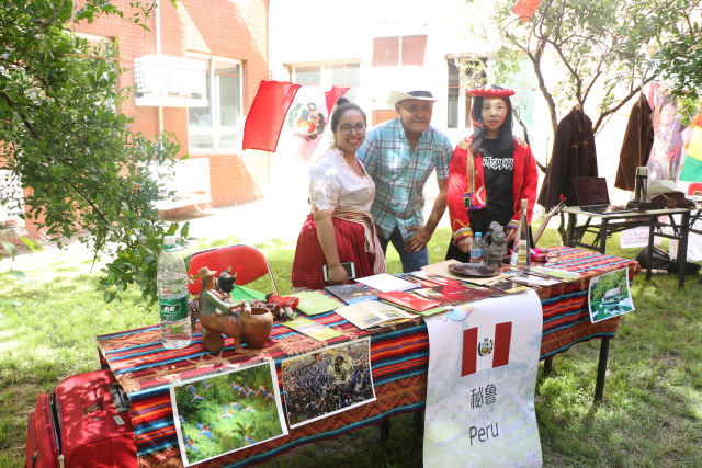 国际教育学院第一届“世界文化节”容纳了各国风情,让在场者“不出北体,畅游世界”。文化节根据不同参展国家设立了多个展区,参与者可以通过详细的宣传资料、精心设计的展棚和别具特色的展板了解当地风俗文化,更现场品尝各国美食,参与各国传统游戏,与世界各地的留学生进行亲密互动。舞台表演区则有来自厄瓜多尔、马来西亚、秘鲁、玻利维亚、越南和中国台湾的学生进行歌舞表演,将现场气氛一次次推向高潮。